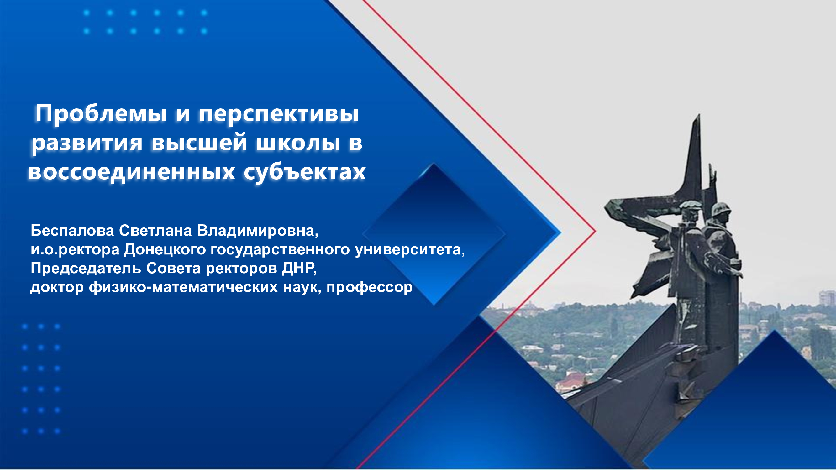 Новый импульс в развитии наших отношений дает признание Российской Федерацией независимости Донецкой Народной Республики и подписание между ними Договора о сотрудничестве. Практической реализацией его положений стала наша конференция, в задачи которой входит дальнейшее развитие комплексного сотрудничества в образовательной и научной сферах.