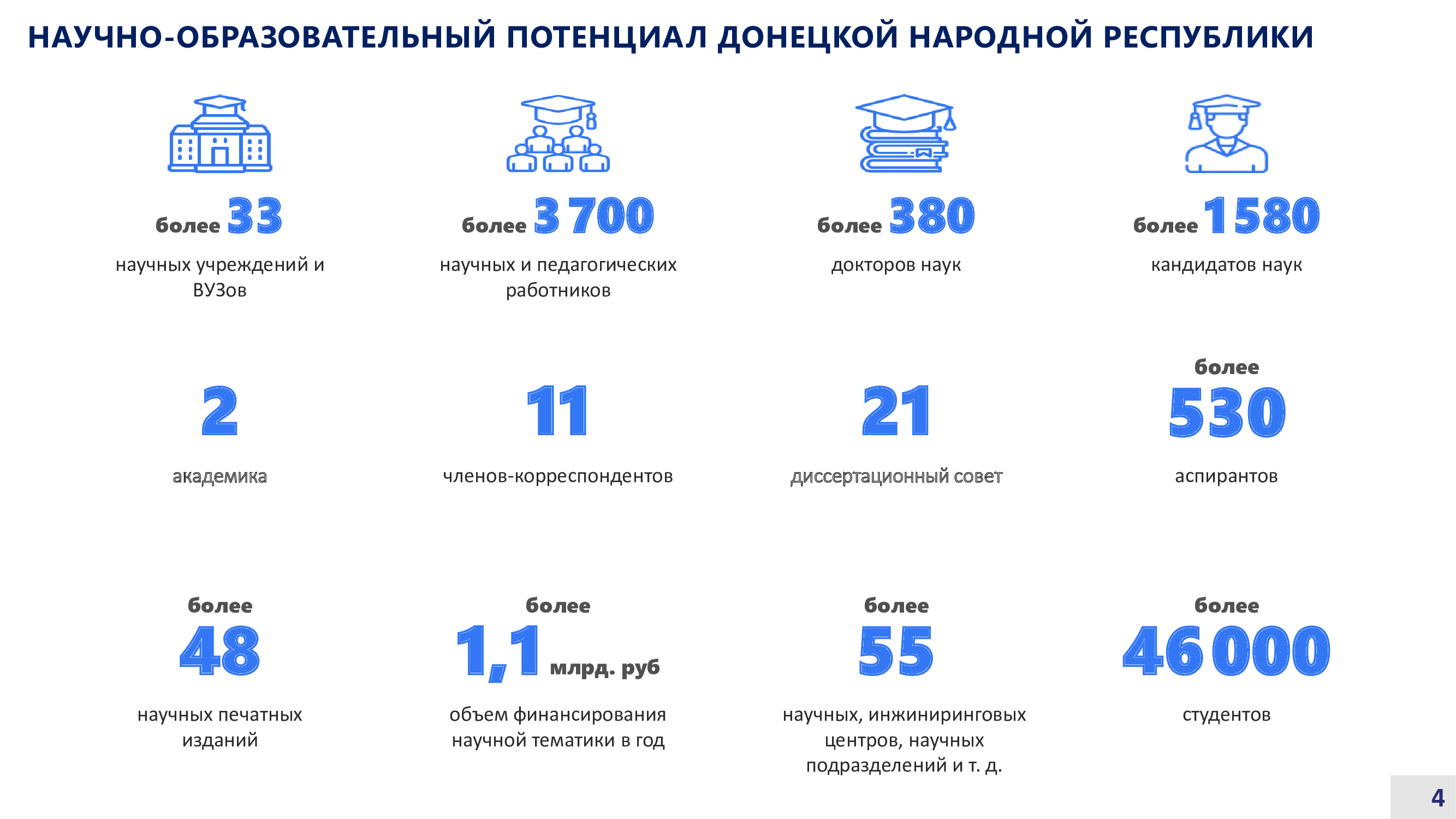 Потенциал образования и науки Донецкой Народной Республики является одним из важнейших резервов ее интенсивного развития и может в перспективе обеспечить весомый вклад в достижение лидерства отечественной науки.