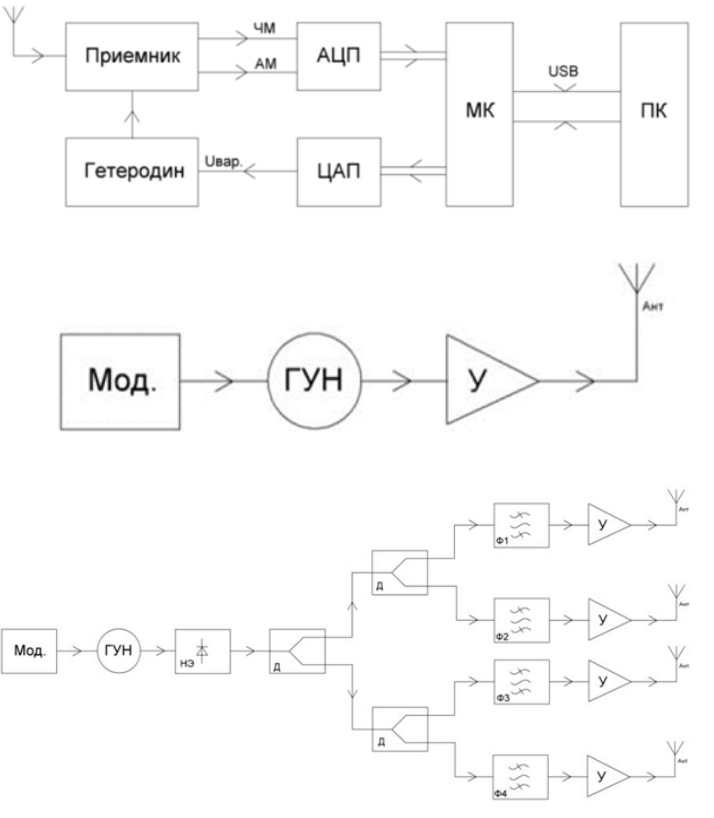 - Получили дальнейшее развитие и апробированы функциональные блоки автоматизированной системы научных исследований радиоканалов ПЭМИН для обнаружения несанкционированной передачи информации по радиоканалу, обладающие характеристиками, сопоставимыми с профессиональными устройствами, но отличающиеся низкой стоимостью и простотой конструкции (рис. 14).