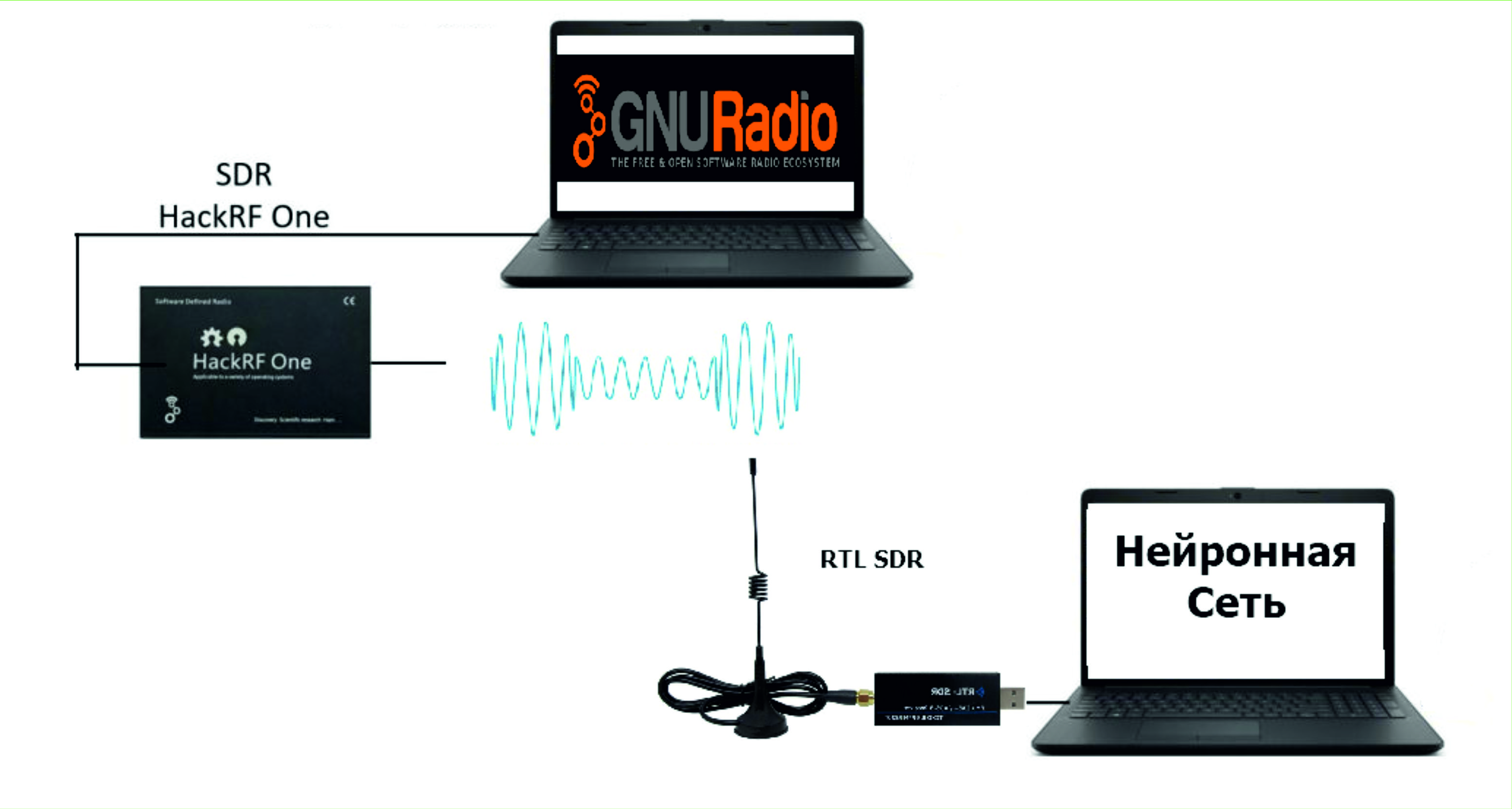 - Впервые разработана и апробирована процедура для определения качественных характеристик побочных электромагнитных излучений и наводок элементов и устройств офисной вычислительной техники на базе программно-определяемых радиосистем общего назначения, которая в отличие от аналогов в качестве средств фиксации и измерений позволяет использует распространённые и широкодоступные SDR-платформы (рис. 13).
