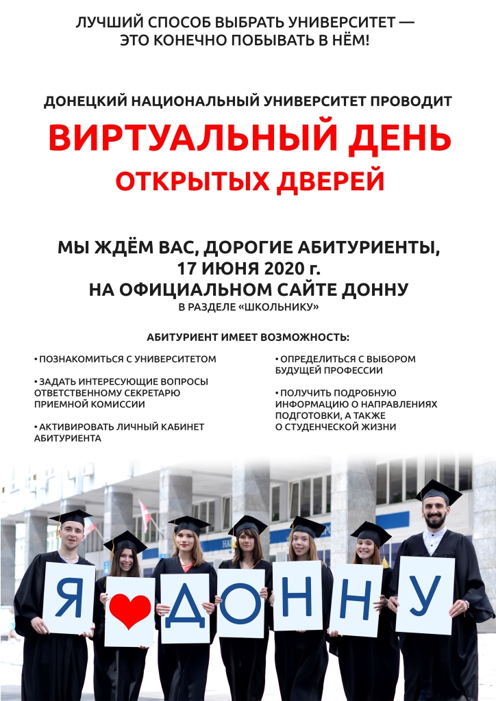 17 июня 2020 года мы ждём вас на виртуальном Дне открытых дверей Донецкого национального университета!