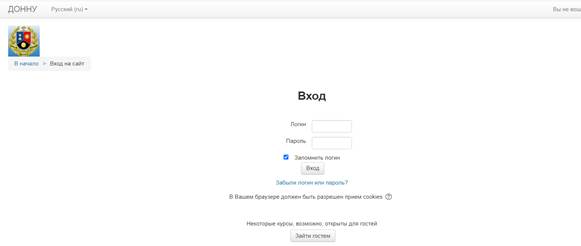 Авторизация в системе дистанционного образования ДонНУ Moodle