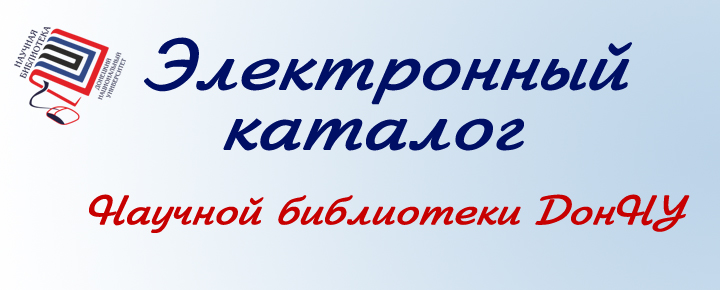 Электронный каталог с БД электронных изданий ФГБОУ ВО "ДонГУ" Локальная (на территории библиотеки) и веб-версия. Отражает сведения о всех видах изданий, поступивших в фонд библиотеки, включая электронные. Издания, не вошедшие в ЭК, отражены в карточных каталогах: алфавитном и систематическом (глав. корпус, ауд. 107). Поиск - свободный, Электронные формуляр, издания - авторизованный